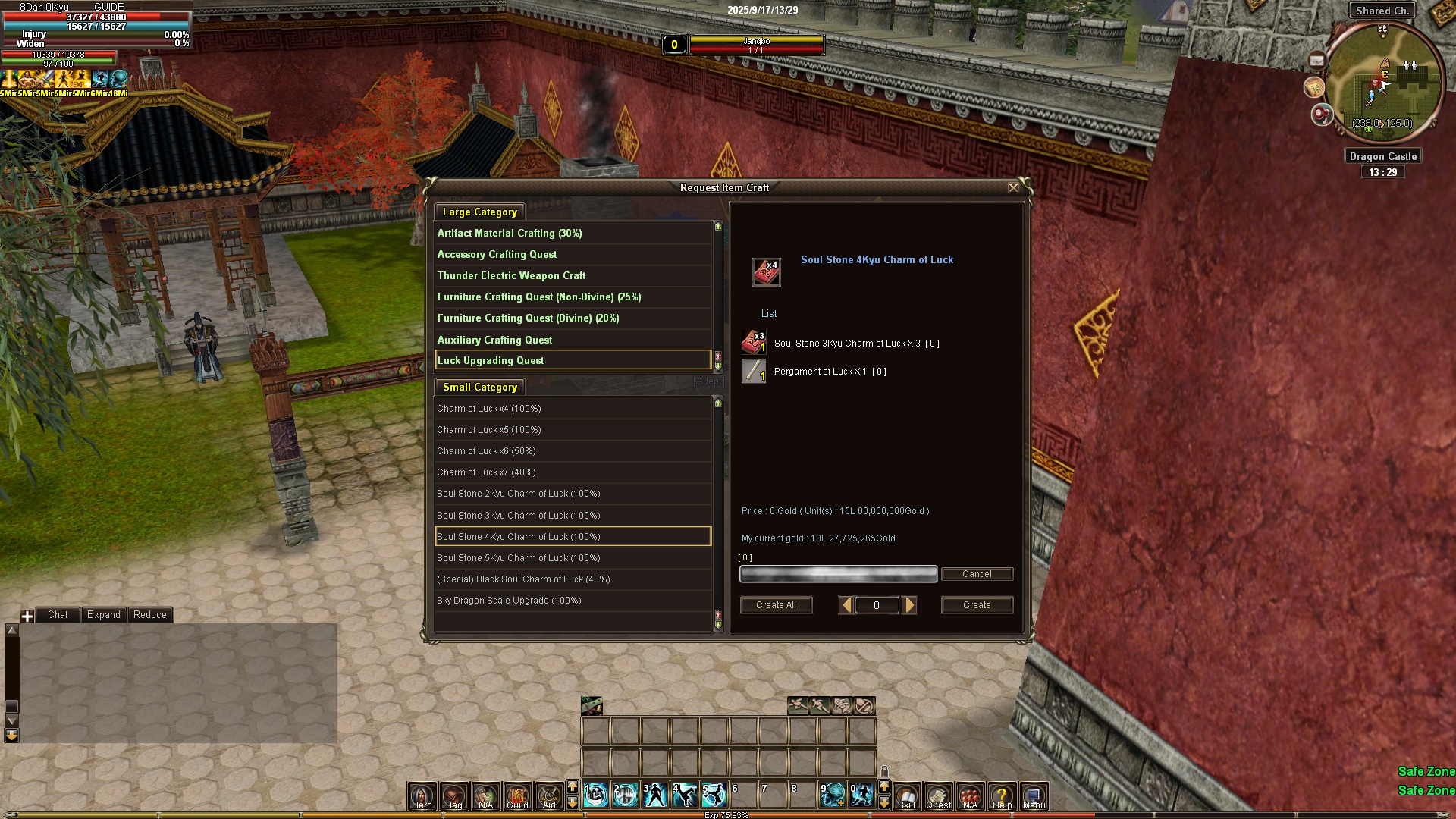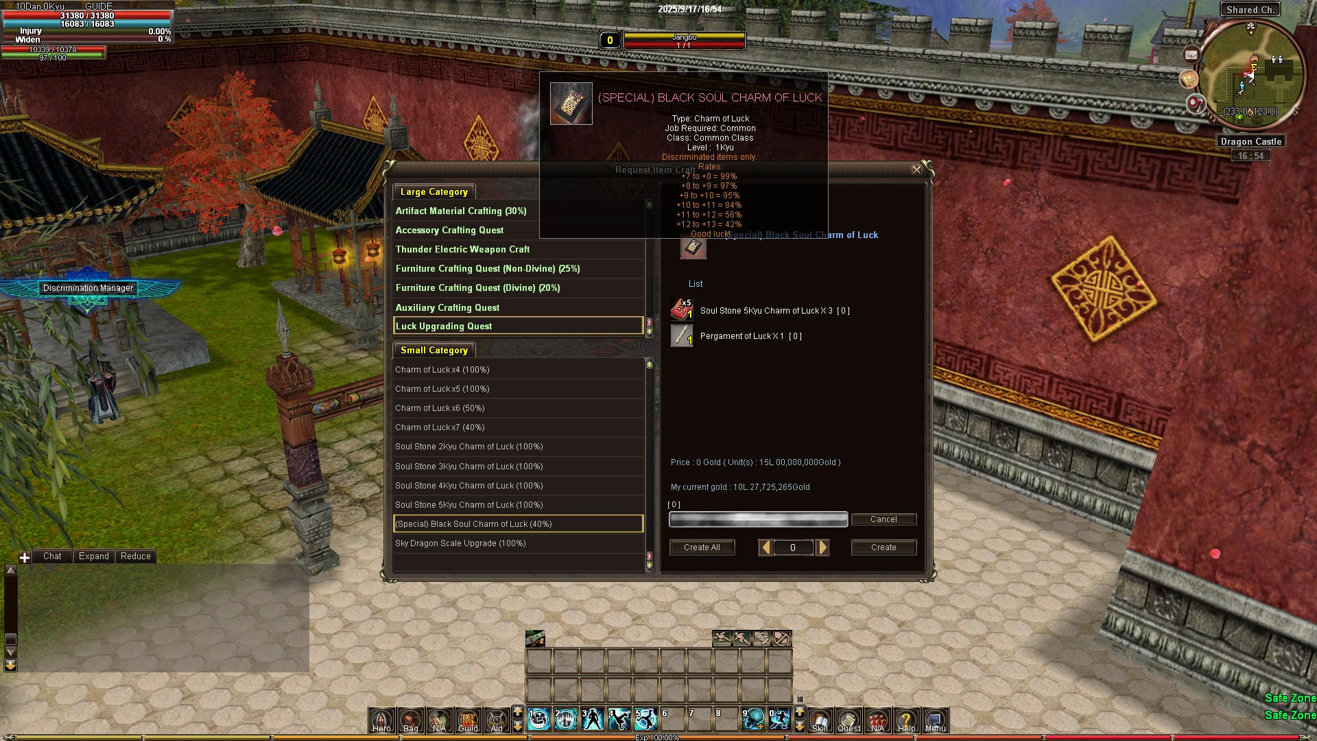 Buy 5kyu charm from Dynasty Merchant and craft [Black Soul Charm of Luck].