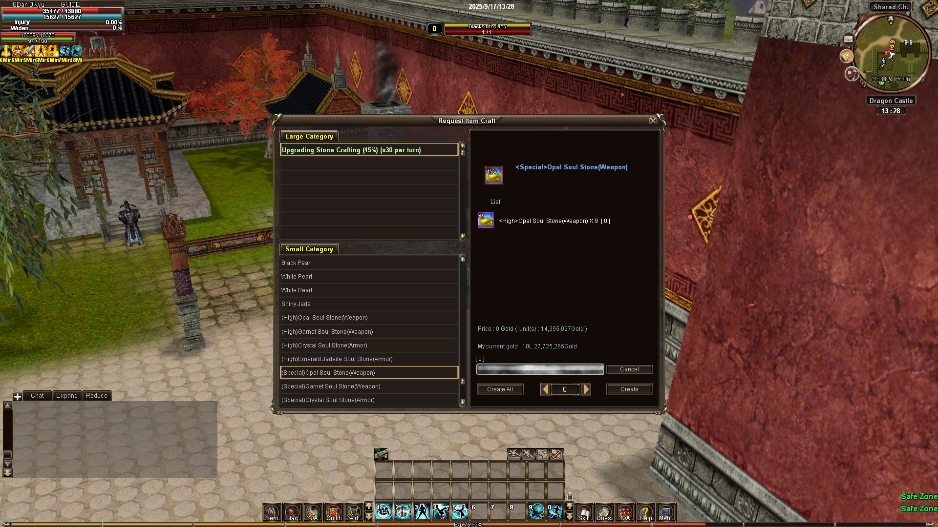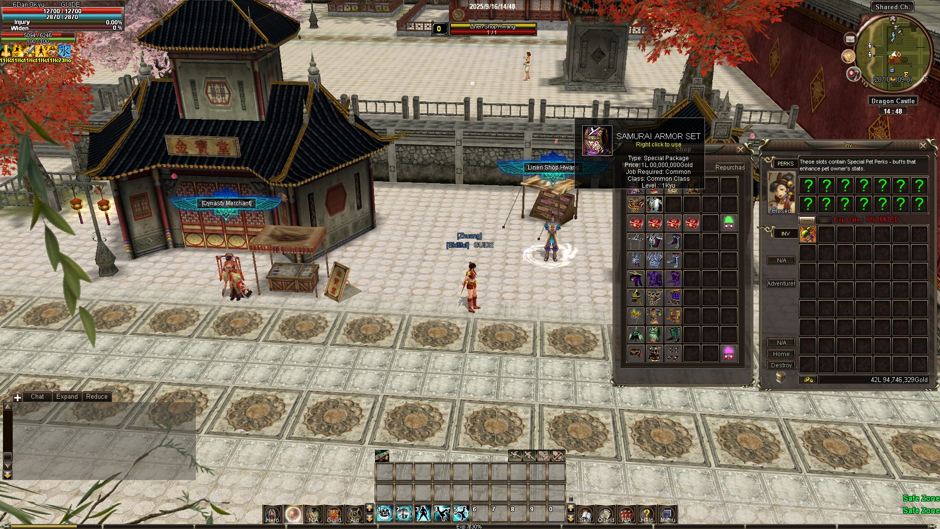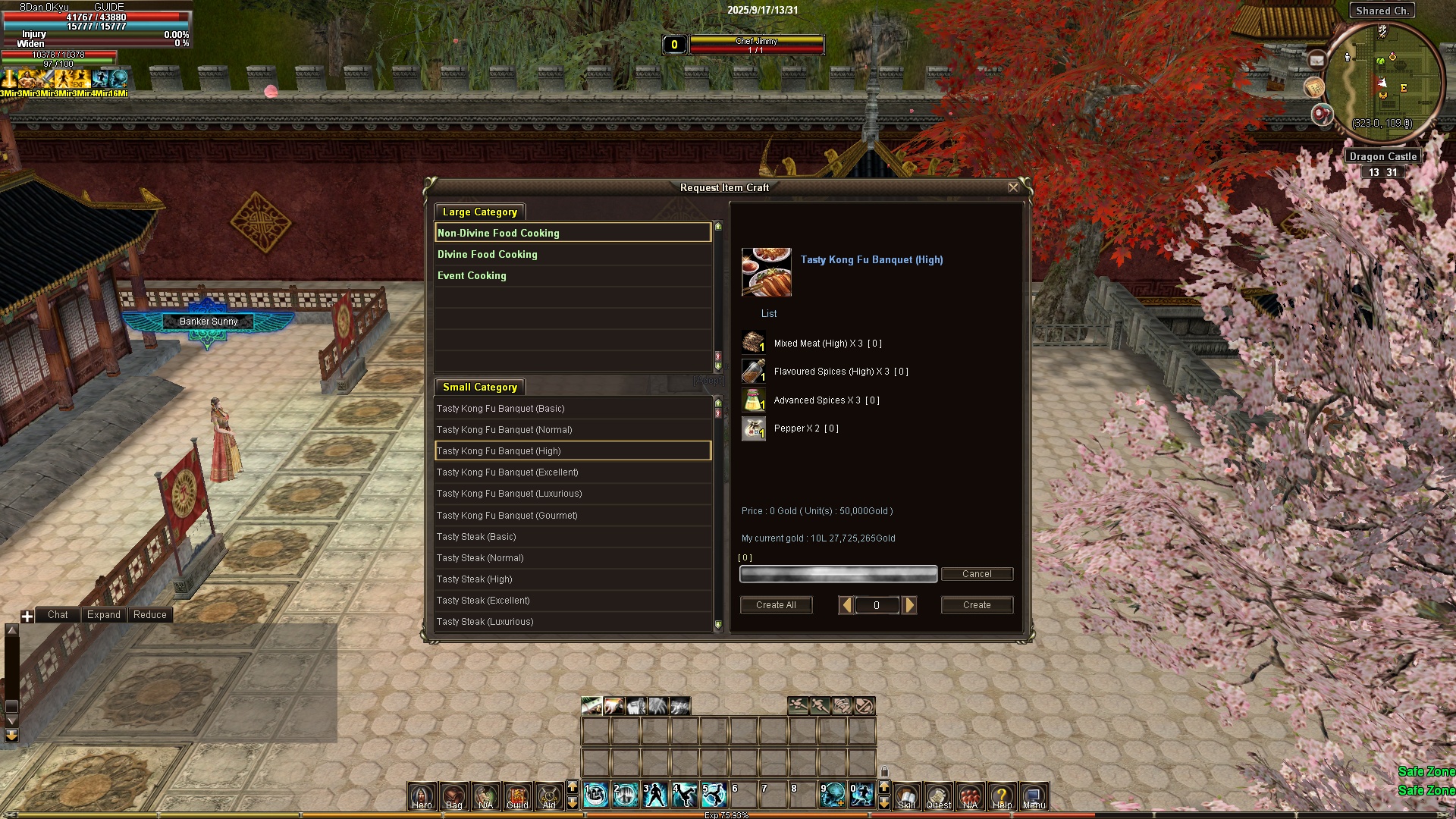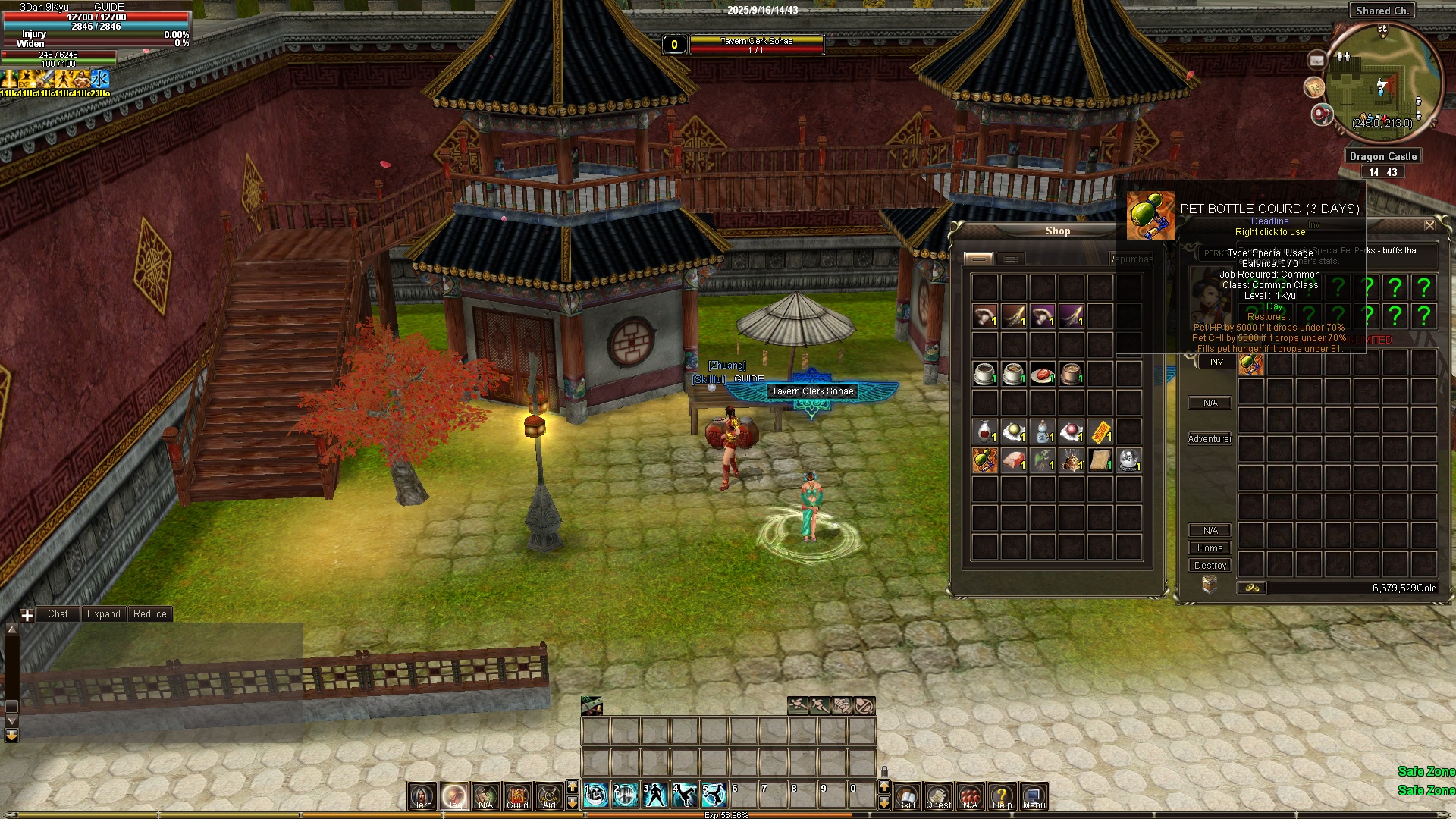 Go to the outskirts of Dragon Castle and hunt [Castle Giant Boars]. They give ~1,5m gold, so set up aid for a couple of hours there in order to obtain gold for skill books and some potions.