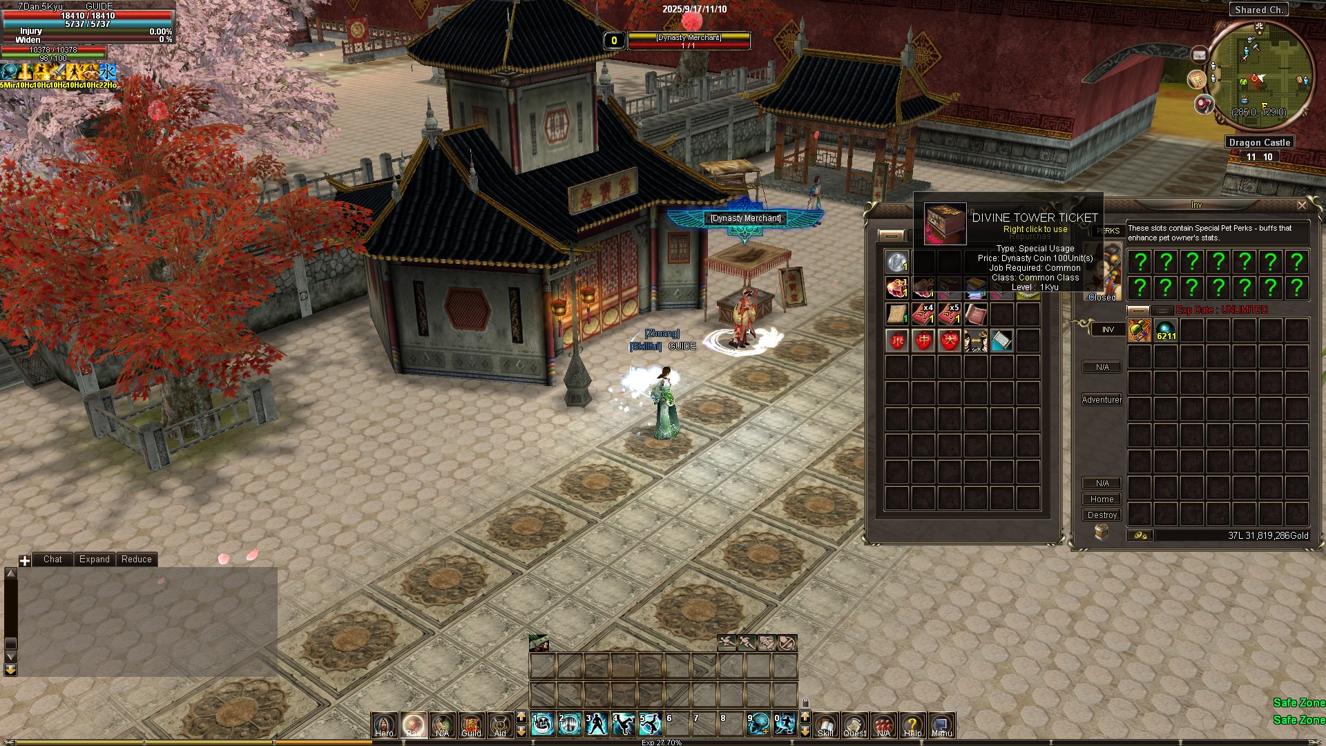 Visit Dynasty Merchant in Dragon Castle and buy Divine Tower Ticket.