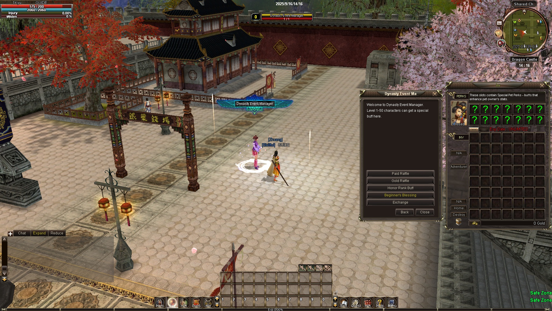 First things first - after you create a character, talk to Dynasty Event Manager and get the [Beginner's Blessing].